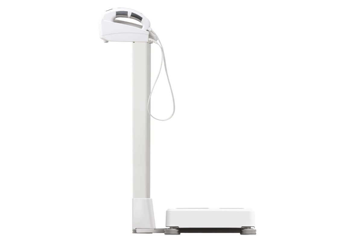 Accuniq BC310 wyposażony w kolumnę zapewnia dodatkową stabilność podczas pomiarów. Choć jest to urządzenie przenośne, kolumna umożliwia korzystanie z analizatora w jednym miejscu, np. w gabinecie dietetyka czy klubie fitness, zwiększając komfort i wygodę użytkownika.