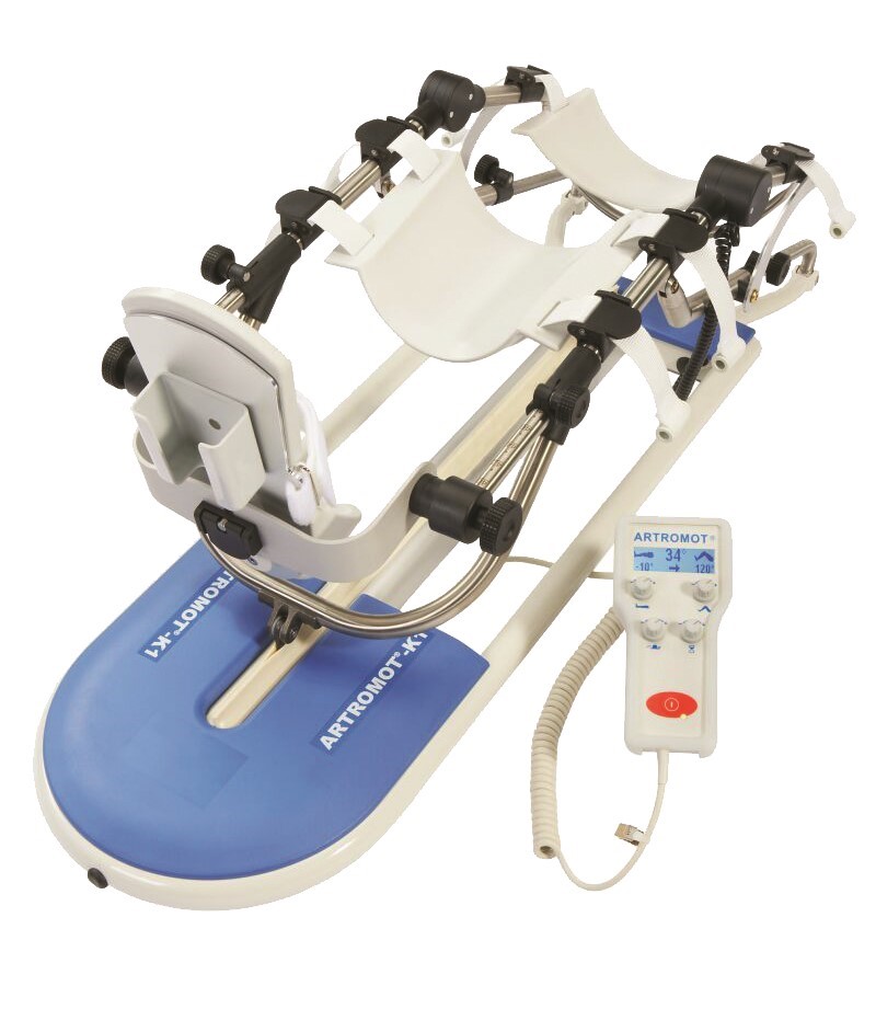 ARTROMOT® K1 łączy w sobie najlepsze cechy sprawdzonego modelu ARTROMOT® K2 z najnowszymi, zaawansowanymi technologiami. ARTROMOT® K1 został opracowany szczególnie z myślą o stosowaniu w praktyce klinicznej jak i wymagających warunkach opieki domowej / wypożyczalni. Nowa konstrukcja ARTROMOT® K1 pozwala na dostosowanie szyny do jeszcze krótszych kończyn i rehabilitację dzieci. ARTROMOT ®-K1 steruje się w łatwy, intuicyjny sposób za pomocą pilota z logicznie opracowanymi ikonami i dużym wyświetlaczem.