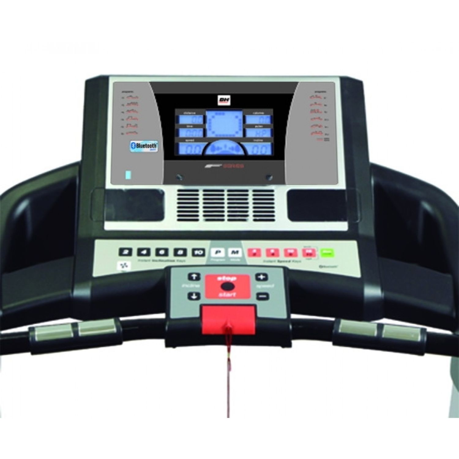 Rozbudowany komputer jest mocną stroną bieżni i.F1 BH Fitness. Wyświetla wszystkie dane dotyczące treningu i pozwala mieć nad nim pełną kontrolę. 12 programów oraz Body Fat sprawiają, że treningi są skuteczniejsze i przynoszą więcej korzyści. Jako model i.Concept bieżnia łączy się bezprzewodowo poprzez Bluetooth® z urządzeniami mobilnymi i umożliwia korzystanie z wielu aplikacji treningowych. Liczne programy motywują do działania i osiągania coraz ambitniejszych celów. Półka na smartfon pozwala mieć go blisko siebie i być zawsze online.