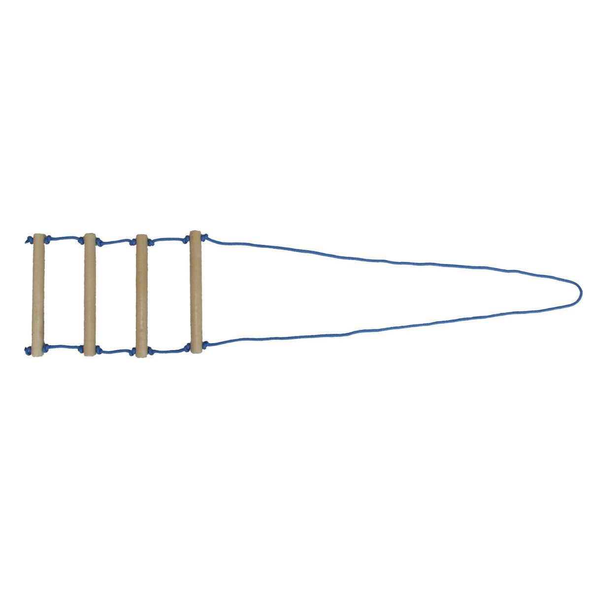 Drabinka przyłóżkowa z drewnianymi szczeblami i linką ułatwiającą zmianę pozycji w łóżku.