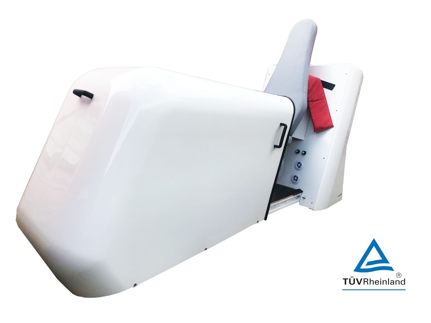 Urządzenie posiada certyfikat medyczny wydany przez jednostkę notyfikowaną TÜV Rheinland. Spełnia najwyższe standardy bezpieczeństwa, dzięki rozbudowanemu systemowi alarmów i zabezpieczeń. Kabina Duo Dry Jet posiada specjalne czujniki stężeń ozonu i dwutlenku węgla, które gwarantują bezpieczeństwo zarówno pacjentowi jak i personelowi obsługującemu urządzenie. Ergonomiczy fotel z możliwością regulacji wysokości zapewnia odpowiedni komfort i bezpieczeństwo pacjenta. Zaprojektowanie programy terapeutyczne do zabiegów z dwutlenkiem węgla oraz ozonie idealnie sprawdzą się w sanatoriach i jednostkach medycznych. Czytelny i prostu w obsłudze interfejs umożliwią łatwe użytkowanie.