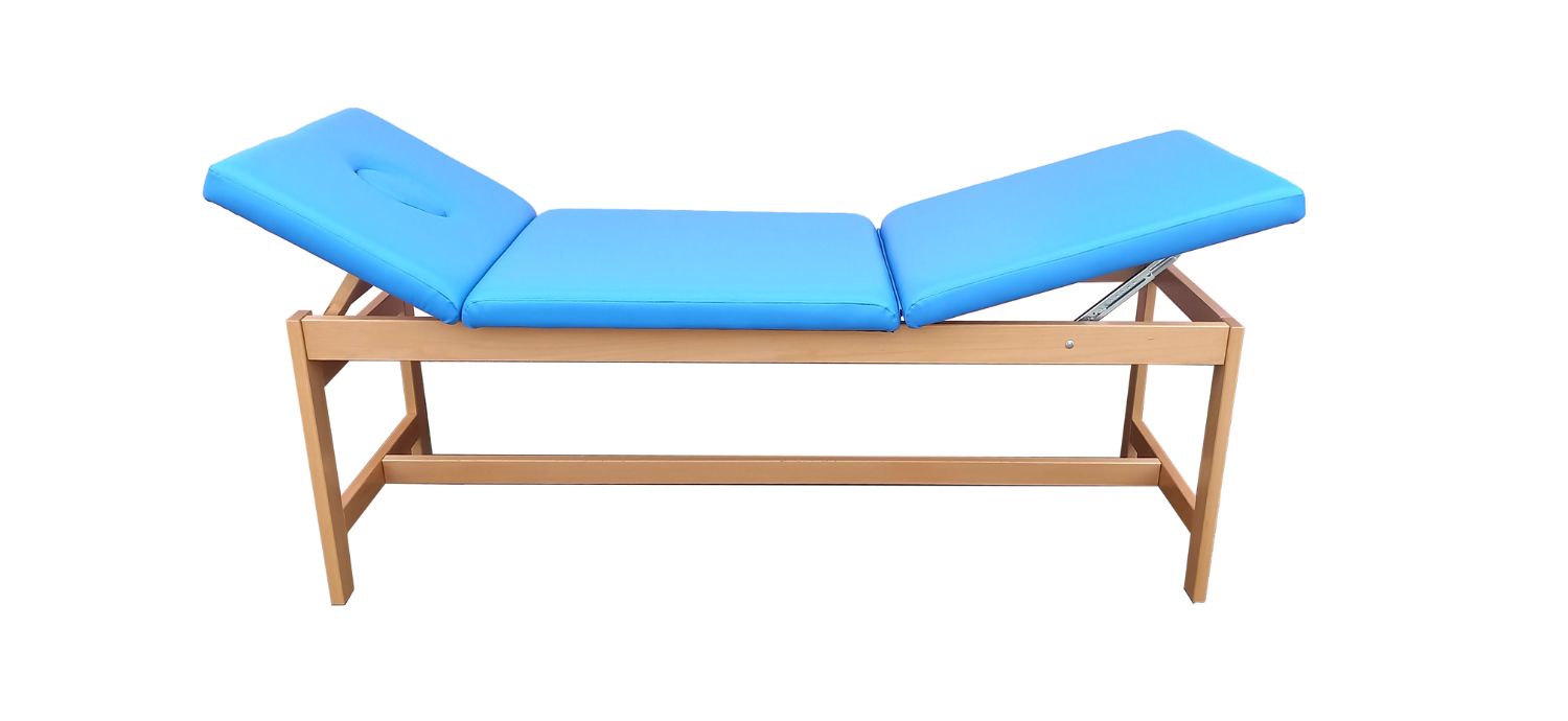 Leżanka drewniana KLD 3-częściowa z regulowanymi segmentami i otworem na twarz.
