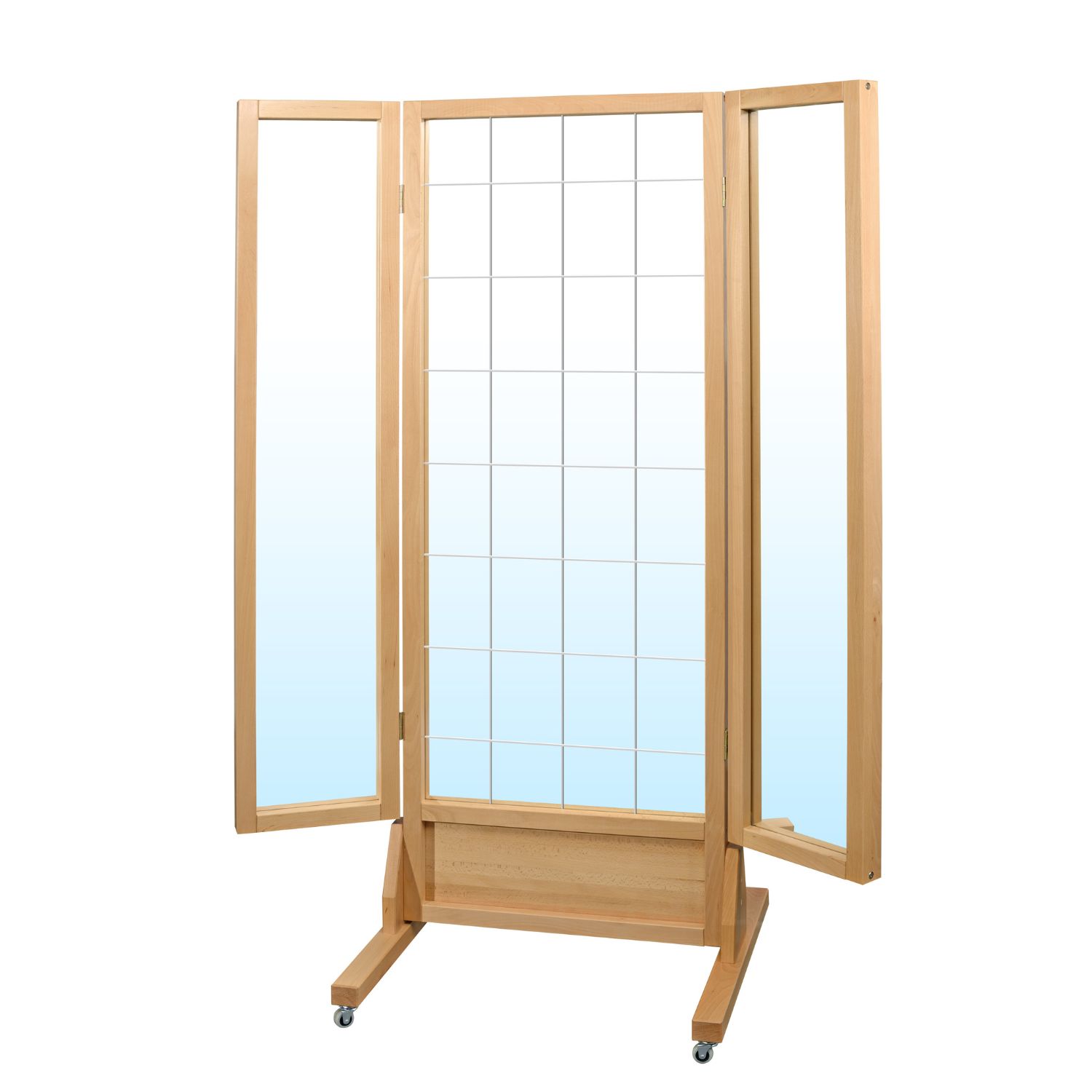 Drewniane lustro korekcyjne LT-3D z bocznymi skrzydłami do obserwacji postawy z różnych perspektyw.