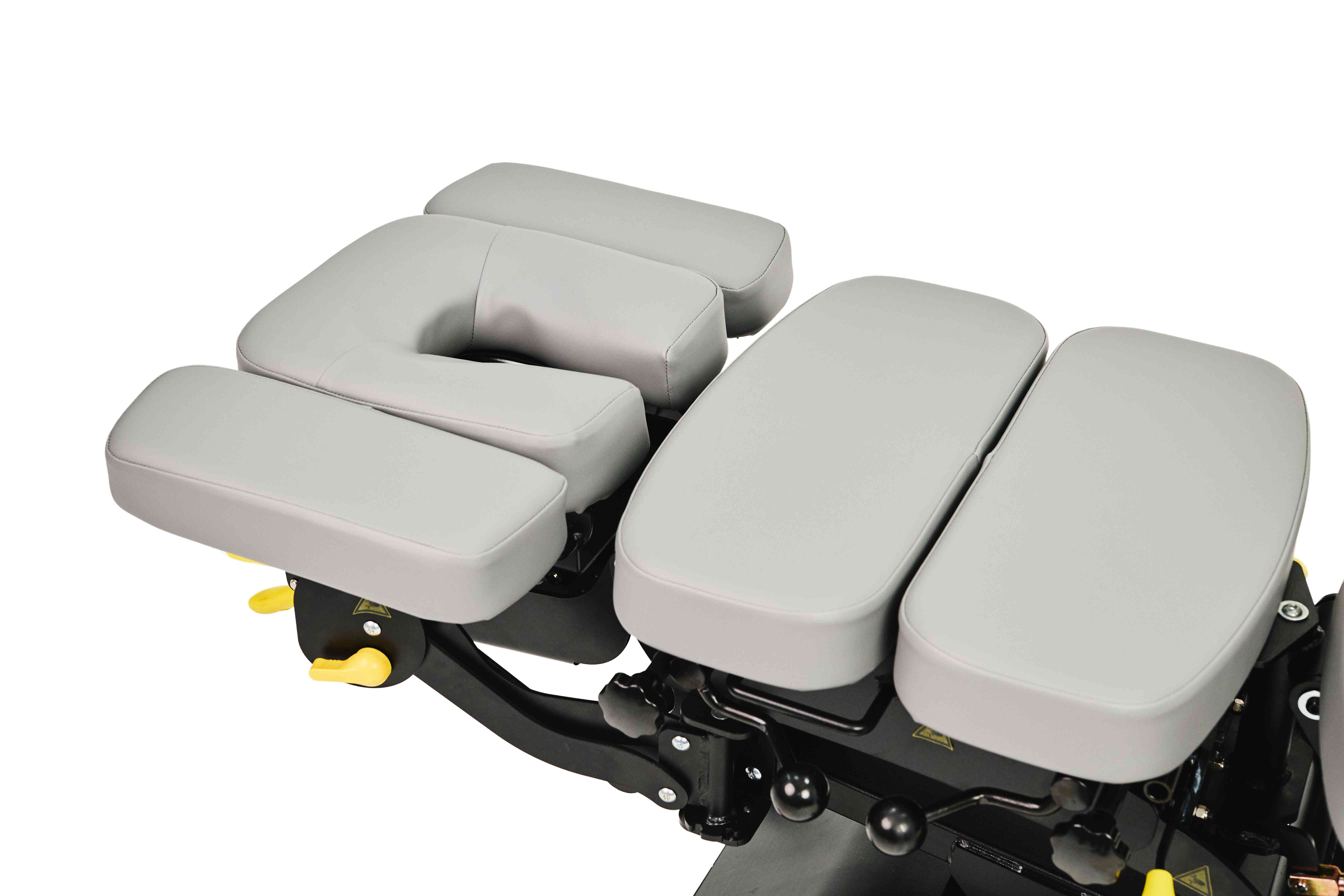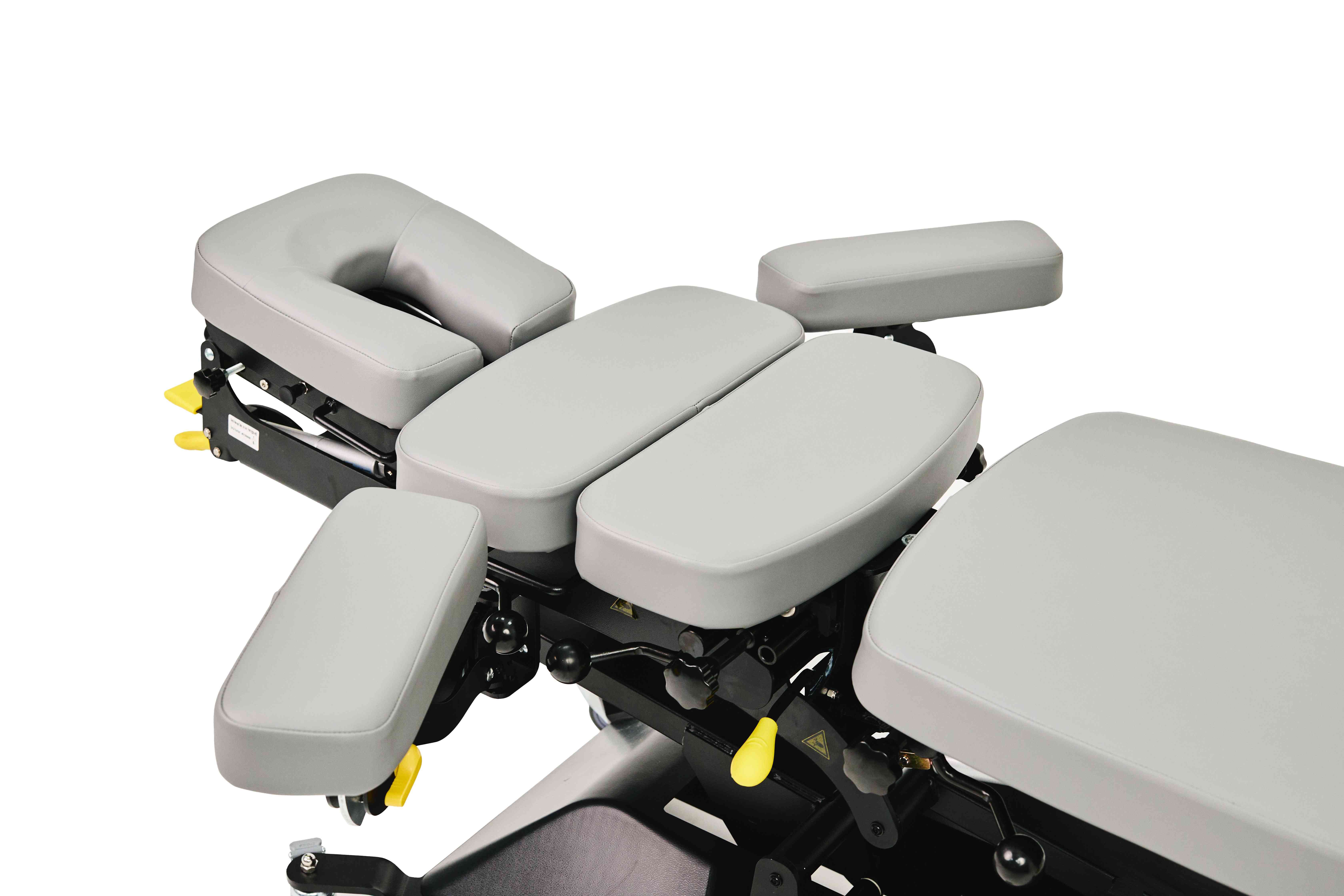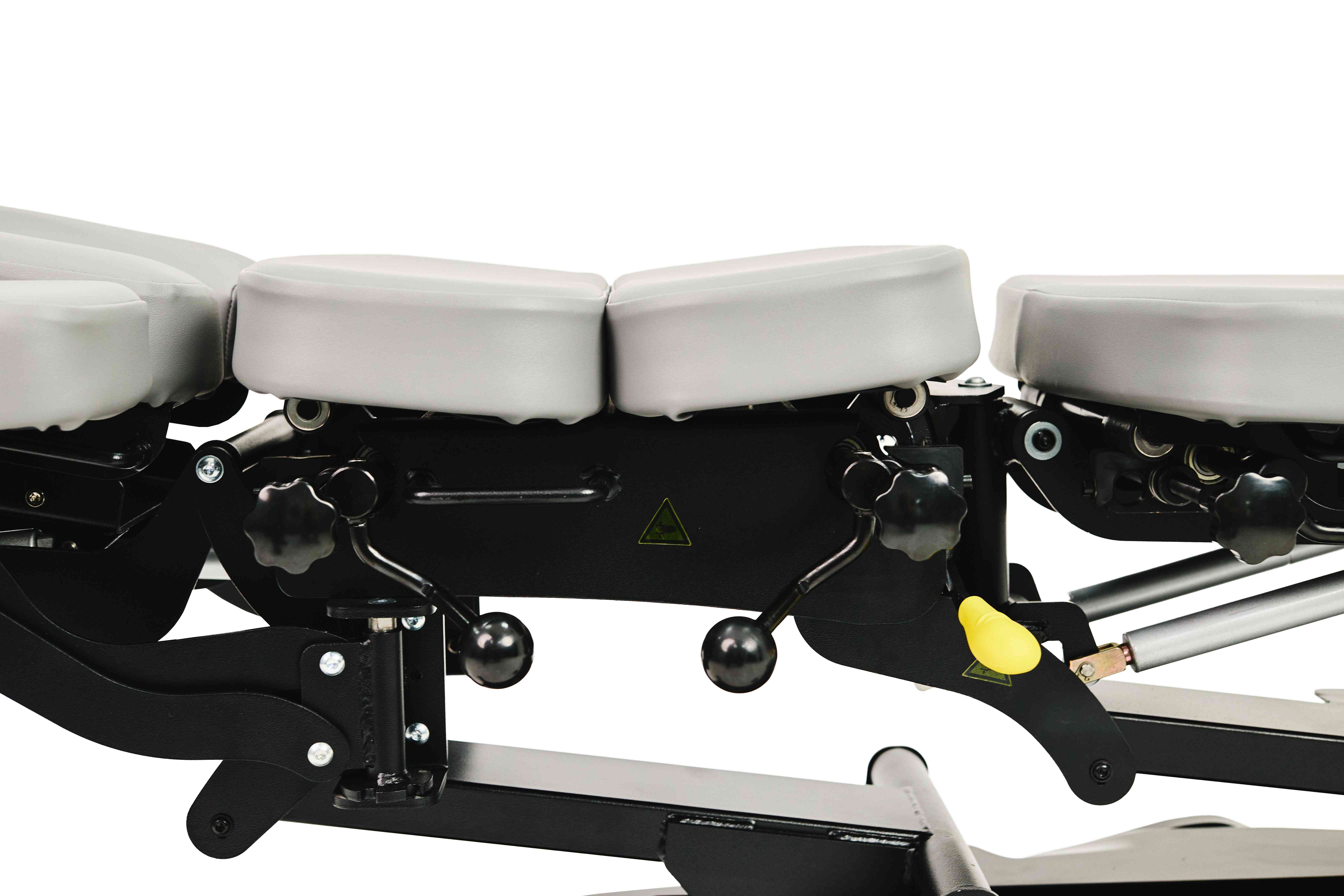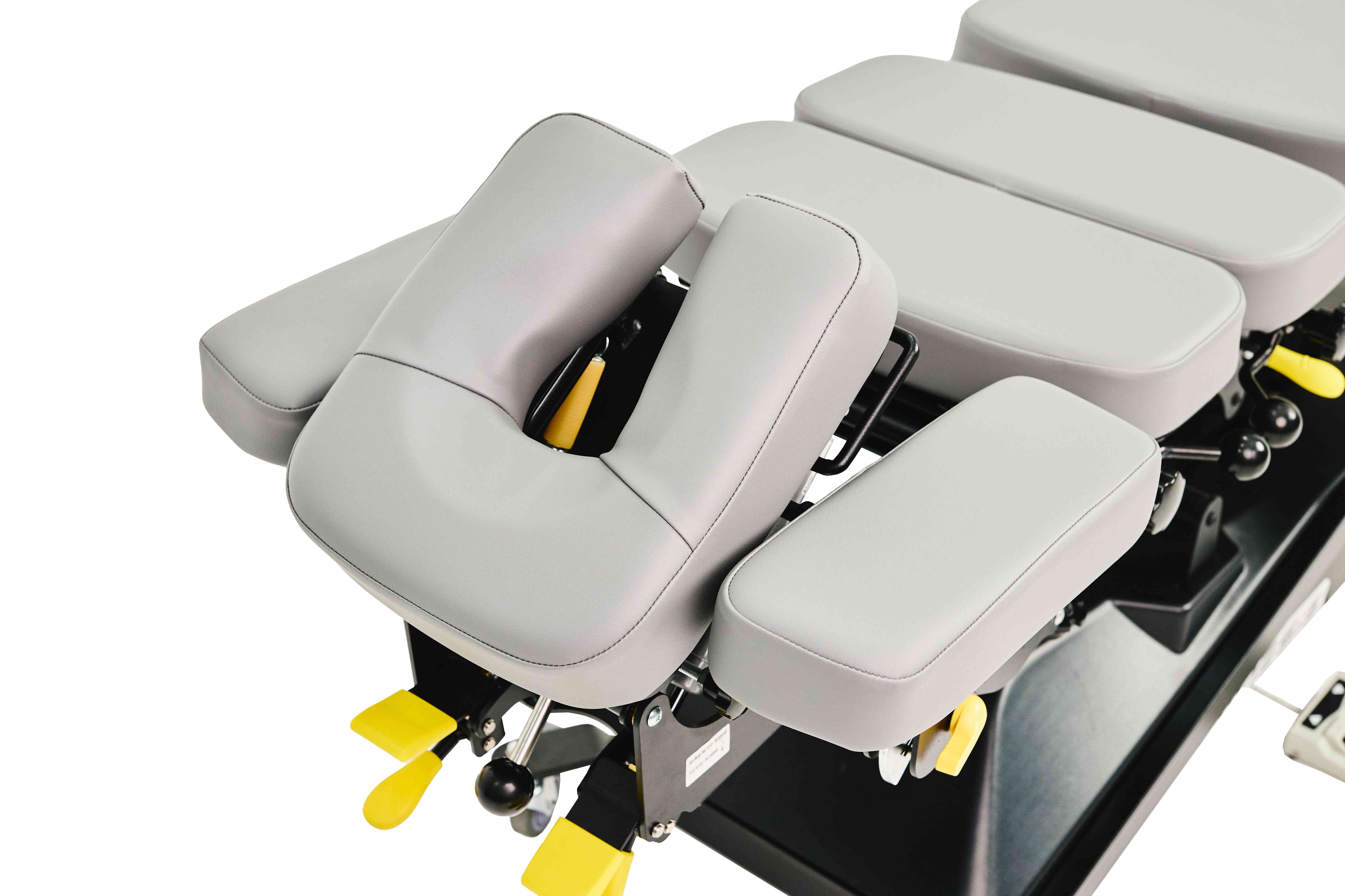 Dzięki unikalnym cechom, może pomagać terapeucie w pozycjonowaniu pacjenta, zapewnia kontrolę ruchu oraz zastosowanie techniki trakcji odcinków kręgosłupa. System dźwigni pozwala na wykonanie techniki DROP oraz uniesiona ciała pacjenta. |