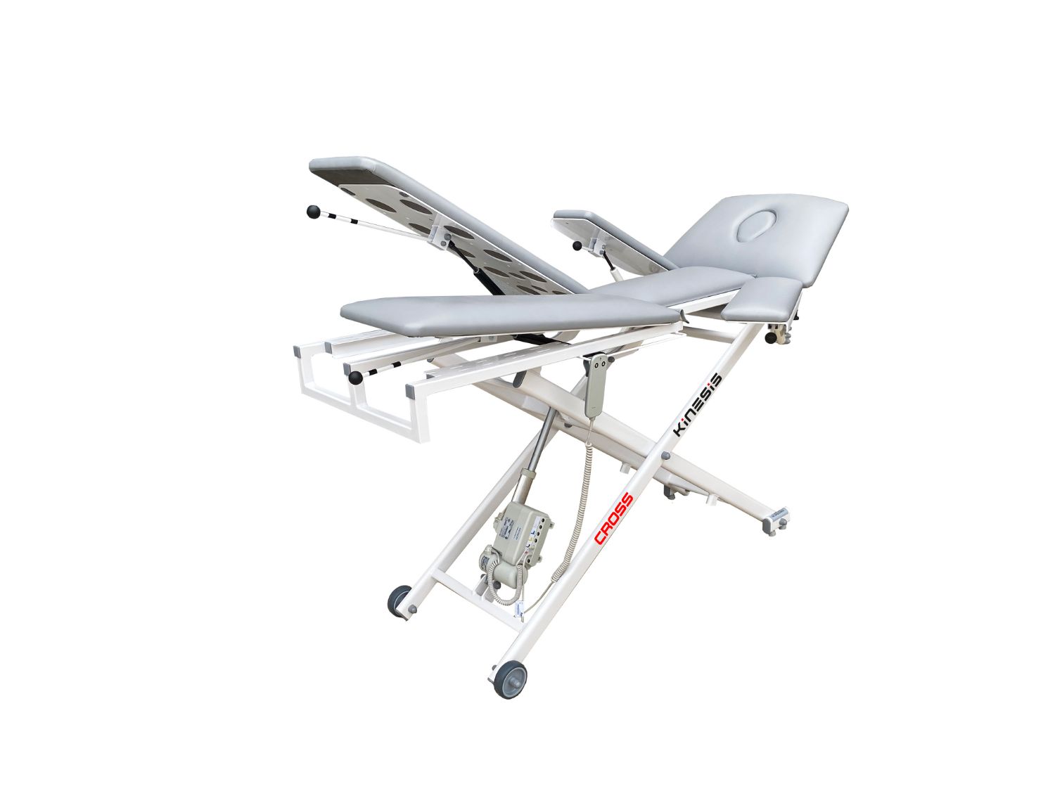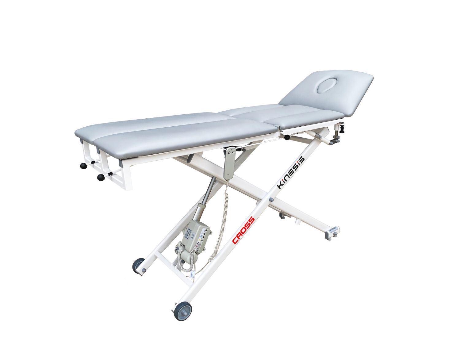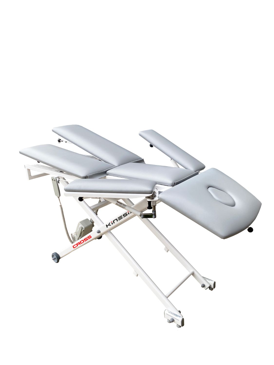 Stół do manualnego drenażu limfatycznego CROSS L, to 6 częściowy stół z szerokim zakresem ruchu poszczególnych segmentów. Charakteryzuje się wzmocnioną konstrukcją stalową. Pozwala to ułożyć pacjenta w pozycji idealnej do wykonywania drenażu. Zagłówek stołu regulowany jest płynnie za pomocą sprężyny gazowej. Podział i łamanie leżyska za pomocą sprężyn gazowych. Stół, dzięki jego solidnemu wykonaniu i wzmocnionej ramie, bez wątpienia sprosta wymaganiom każdego fizjoterapeuty. Tapicerka V line z systemem Easy Clean oraz zwiększoną odpornością na ścieranie stanowi standardowe wyposażenie stołu CROSS L