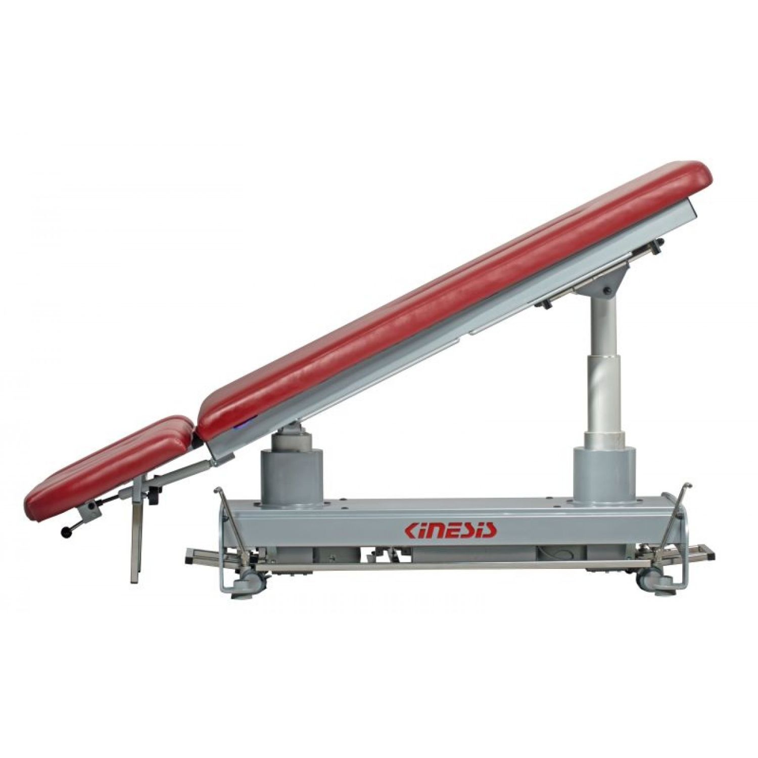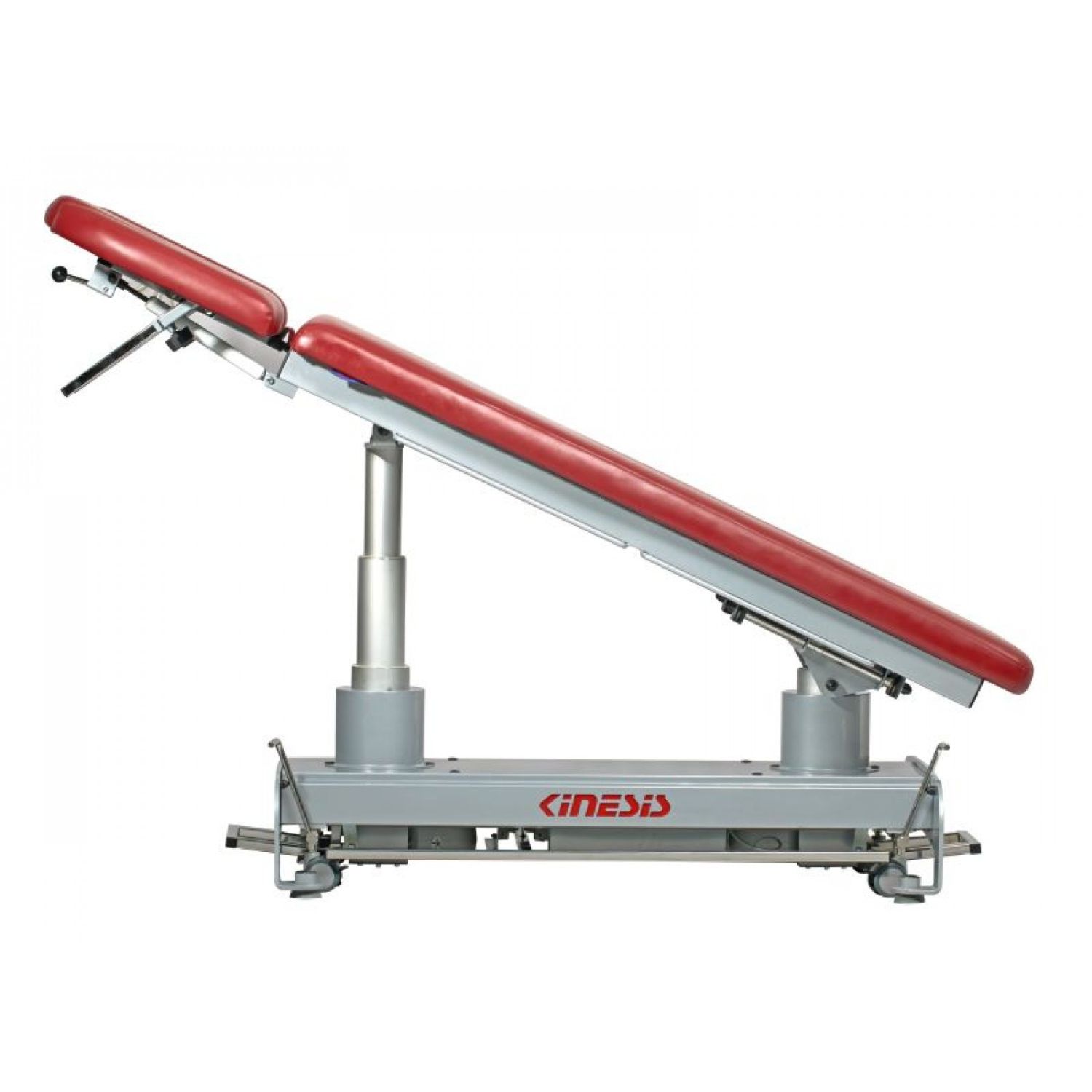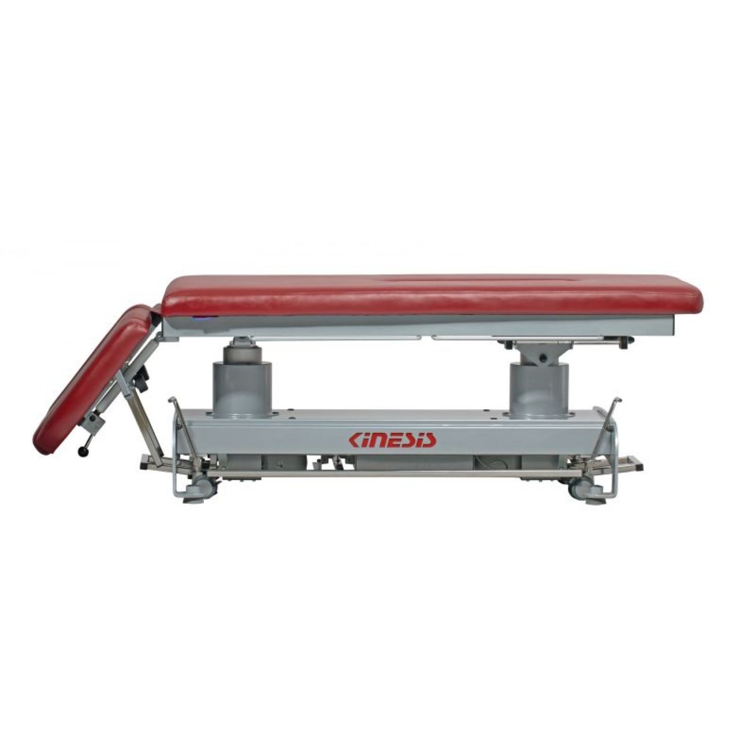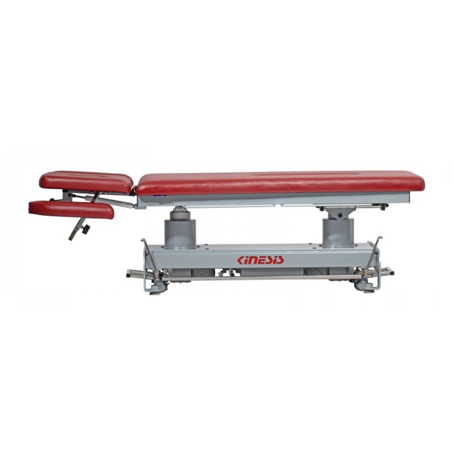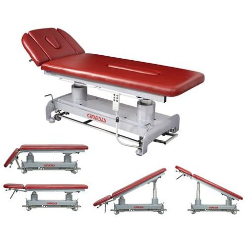Stół rehabilitacyjny PERFECT II 2-częściowy z elektryczną zmianą wysokości leżyska za pomocą ramy wokół stołu, wykonany z profili stalowych malowanych proszkowo. Stół posiada regulację przechyłu wzdłużnego Trendelenburga i anty-Trendelenburga na kolumnach za pomocą pilota ręcznego. Ustawienie podgłówka wspomagane jest sprężyną gazową. Wyposażony w uchwyty do mocowania pasów stabilizacyjnych oraz kółka transportowe. Kolorystyka ze zdjęć może różnić się od kolorów na żywo, ze względu na ustawienia monitora. W razie wątpliwości prosimy o kontakt z biurem.