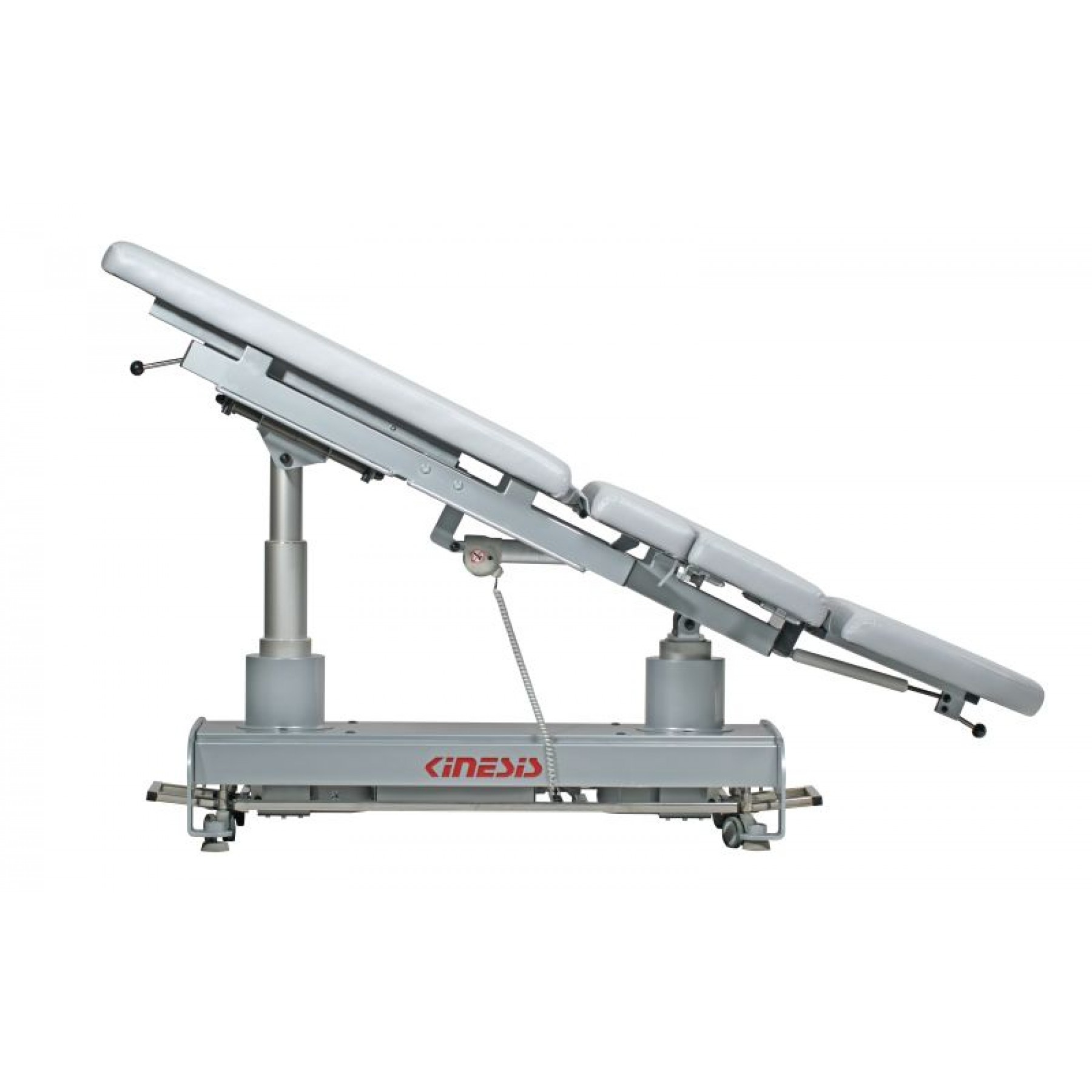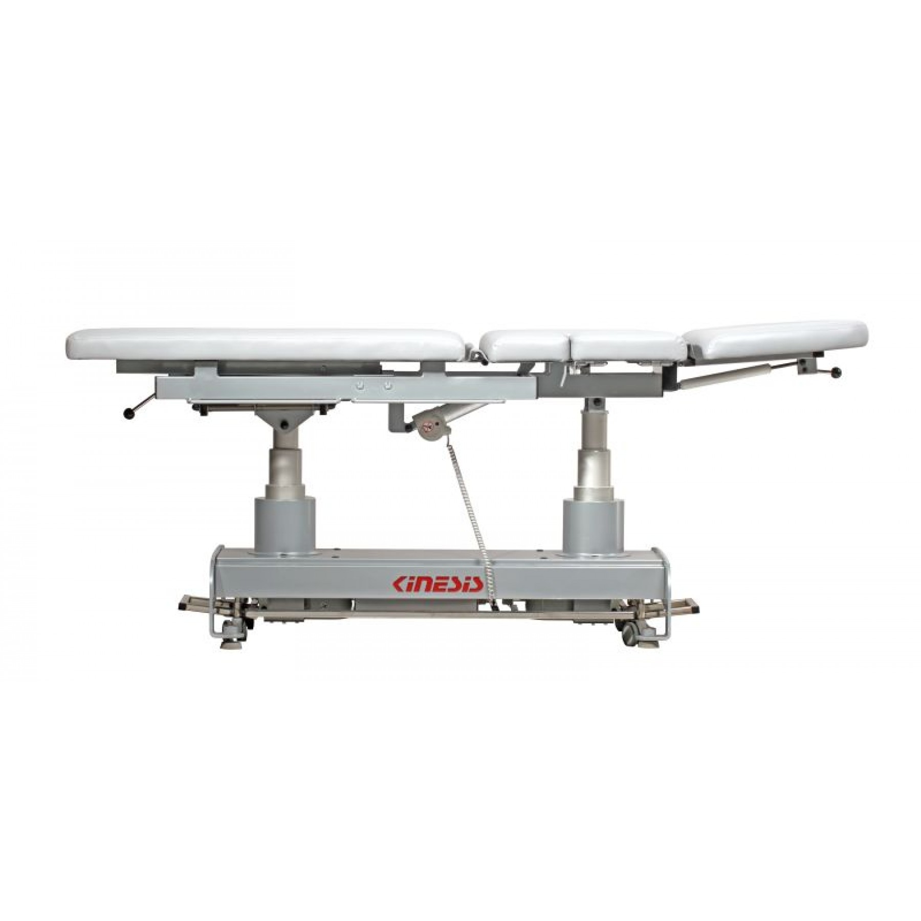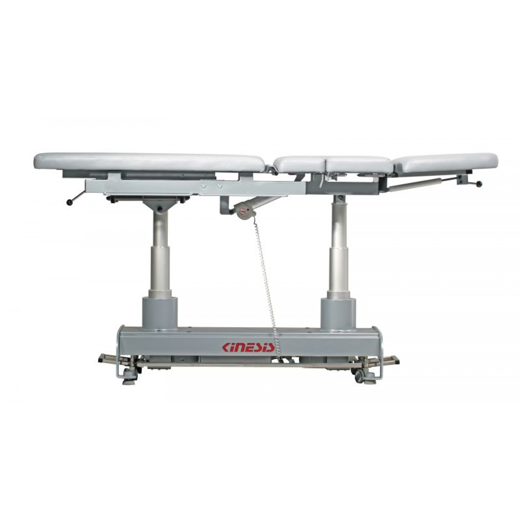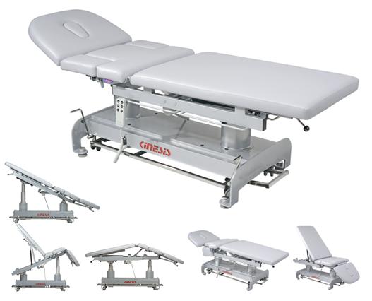 Stół rehabilitacyjny PERFECT III 3-częściowy z elektryczną zmianą wysokości leżyska za pomocą ramy wokół stołu, wykonany z profili stalowych malowanych proszkowo. Trzysegmentowe leże pozwala na różnorodne ułożenie pacjenta na blacie, w pozycji siedzącej, leżącej i półleżącej. Stół posiada regulację przechyłu wzdłużnego Trendelenburga i anty-Trendelenburga na kolumnach za pomocą pilota ręcznego. Ustawienie podgłówka oraz części tylnej do pozycji siedzącej wspomagane są sprężynami gazowymi. Pozycja Pivota regulowana siłownikiem umieszczonym w blacie stołu. Podłokietniki opuszczone mechanicznie. Wyposażony w uchwyty do mocowania pasów stabilizacyjnych oraz kółka transportowe. Kolorystyka ze zdjęć może różnić się od kolorów na żywo, ze względu na ustawienia monitora. W razie wątpliwości prosimy o kontakt z biurem.