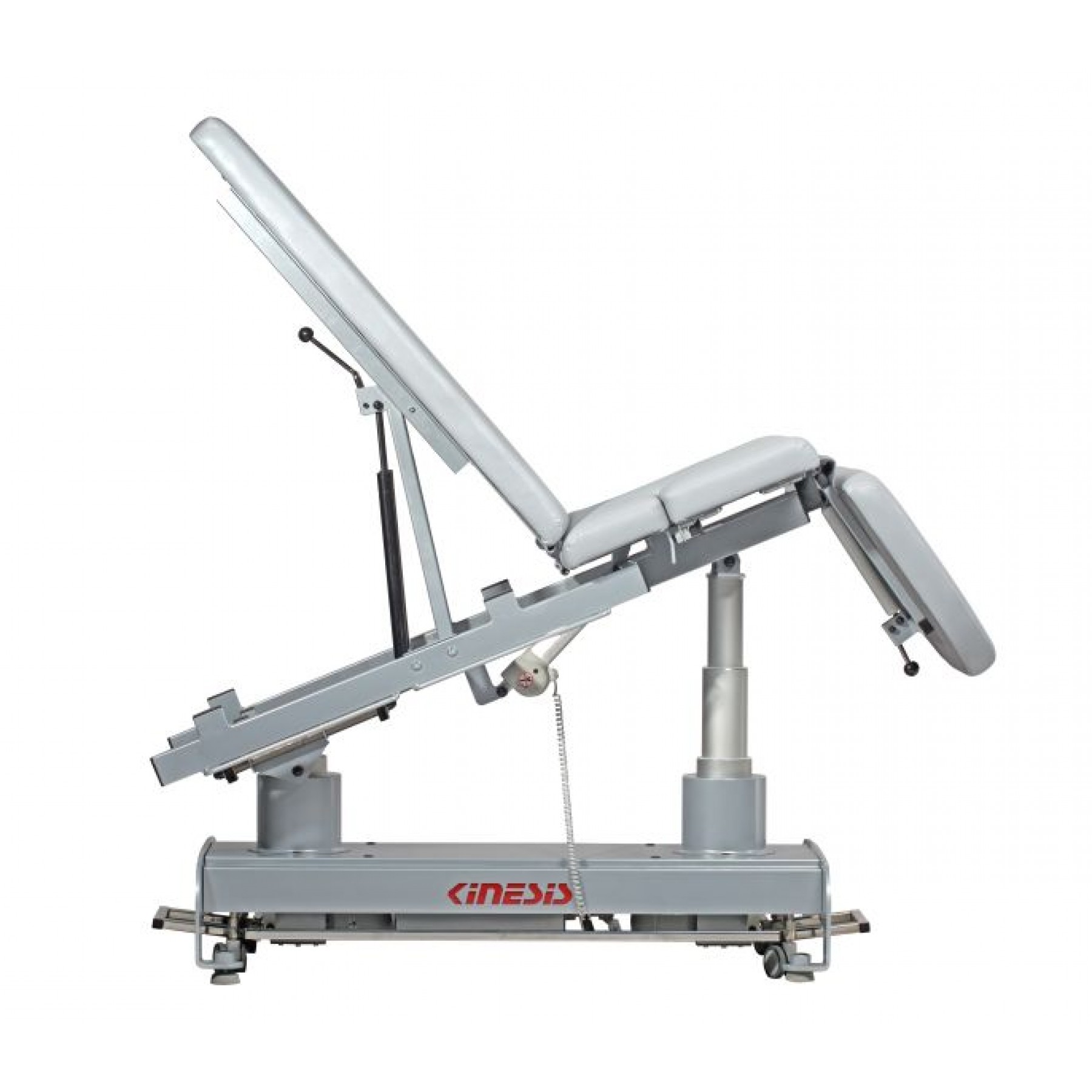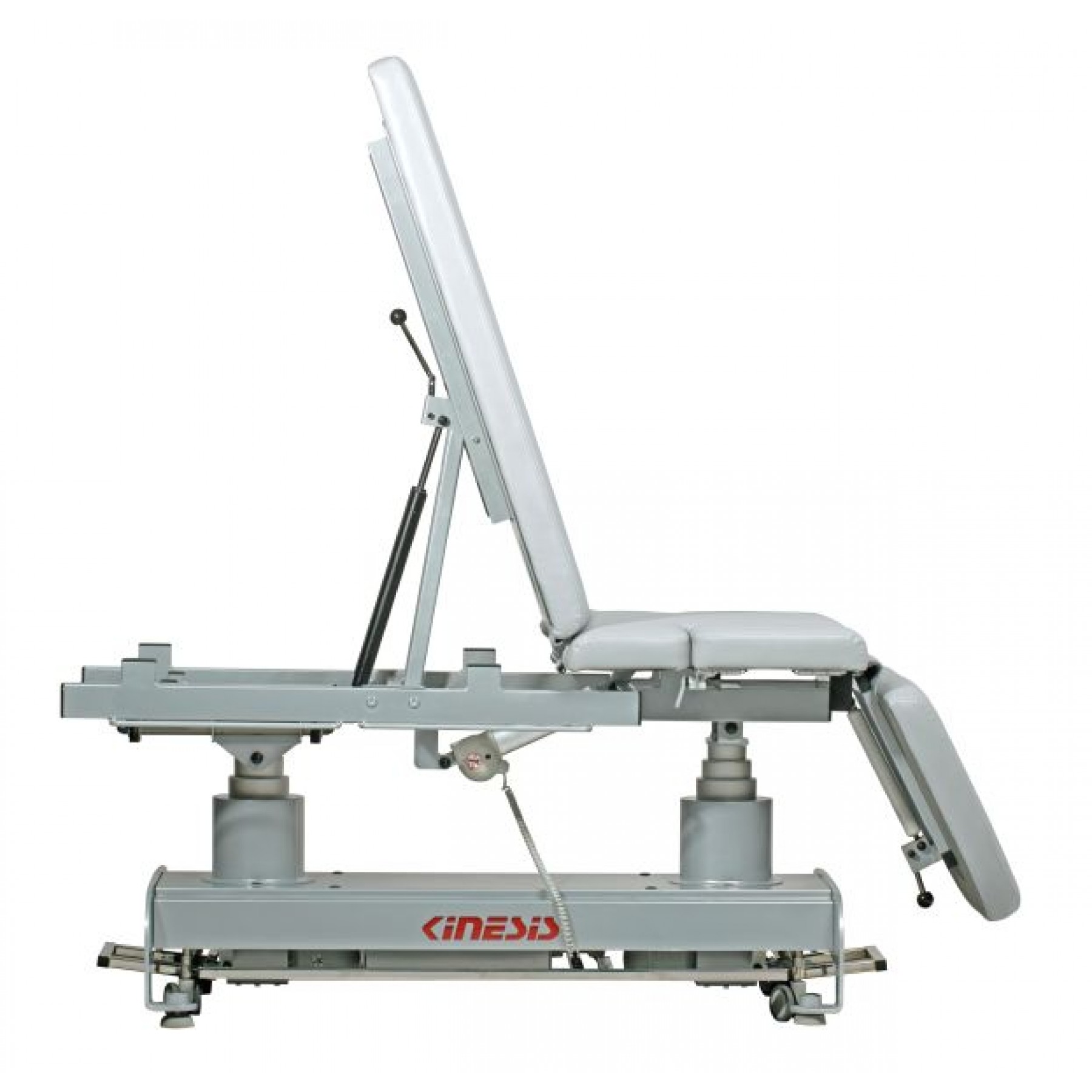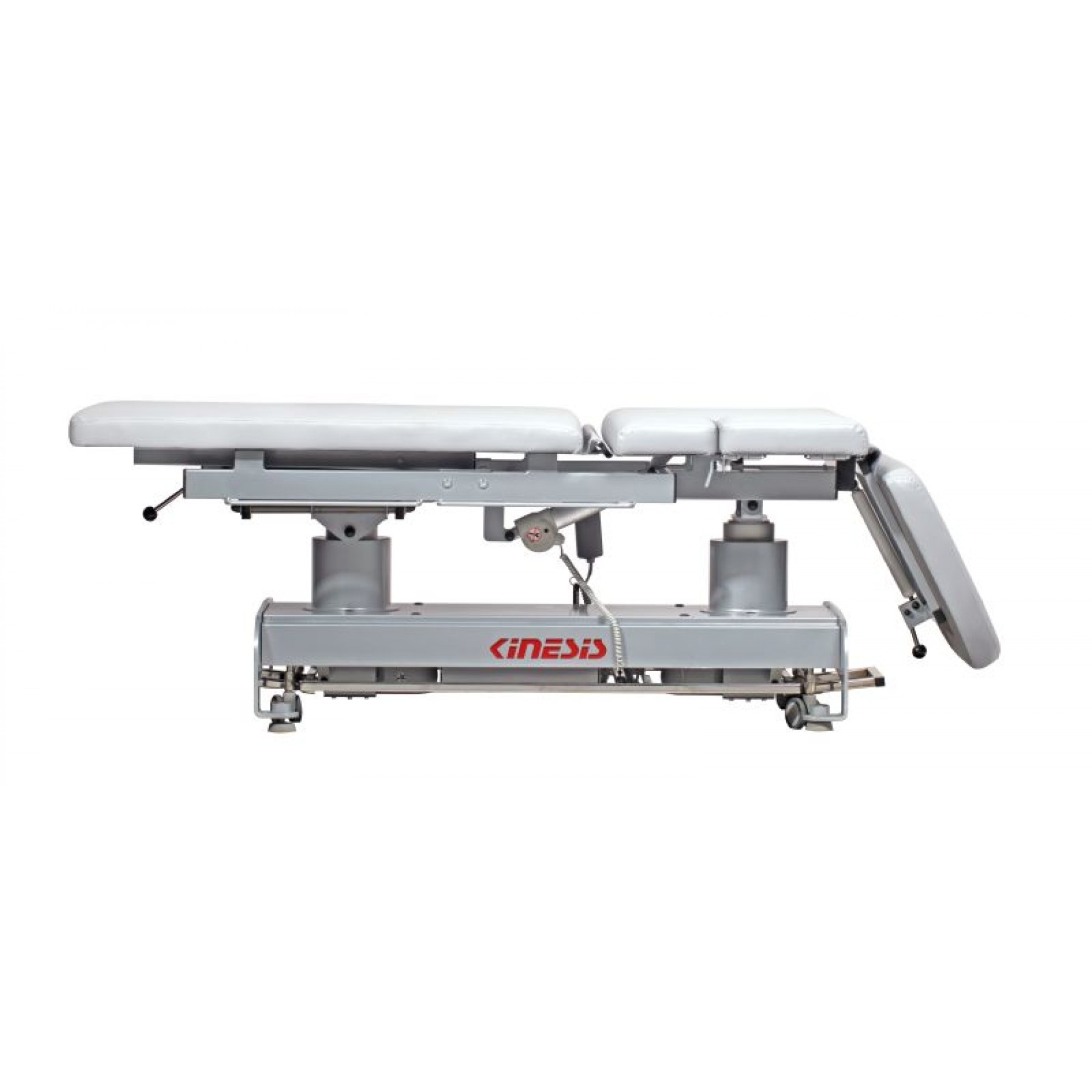 Stół rehabilitacyjny PERFECT III 3-częściowy z elektryczną zmianą wysokości leżyska za pomocą ramy wokół stołu, wykonany z profili stalowych malowanych proszkowo. Trzysegmentowe leże pozwala na różnorodne ułożenie pacjenta na blacie, w pozycji siedzącej, leżącej i półleżącej. Stół posiada regulację przechyłu wzdłużnego Trendelenburga i anty-Trendelenburga na kolumnach za pomocą pilota ręcznego. Ustawienie podgłówka oraz części tylnej do pozycji siedzącej wspomagane są sprężynami gazowymi. Pozycja Pivota regulowana siłownikiem umieszczonym w blacie stołu. Podłokietniki opuszczone mechanicznie. Wyposażony w uchwyty do mocowania pasów stabilizacyjnych oraz kółka transportowe. Kolorystyka ze zdjęć może różnić się od kolorów na żywo, ze względu na ustawienia monitora. W razie wątpliwości prosimy o kontakt z biurem.
