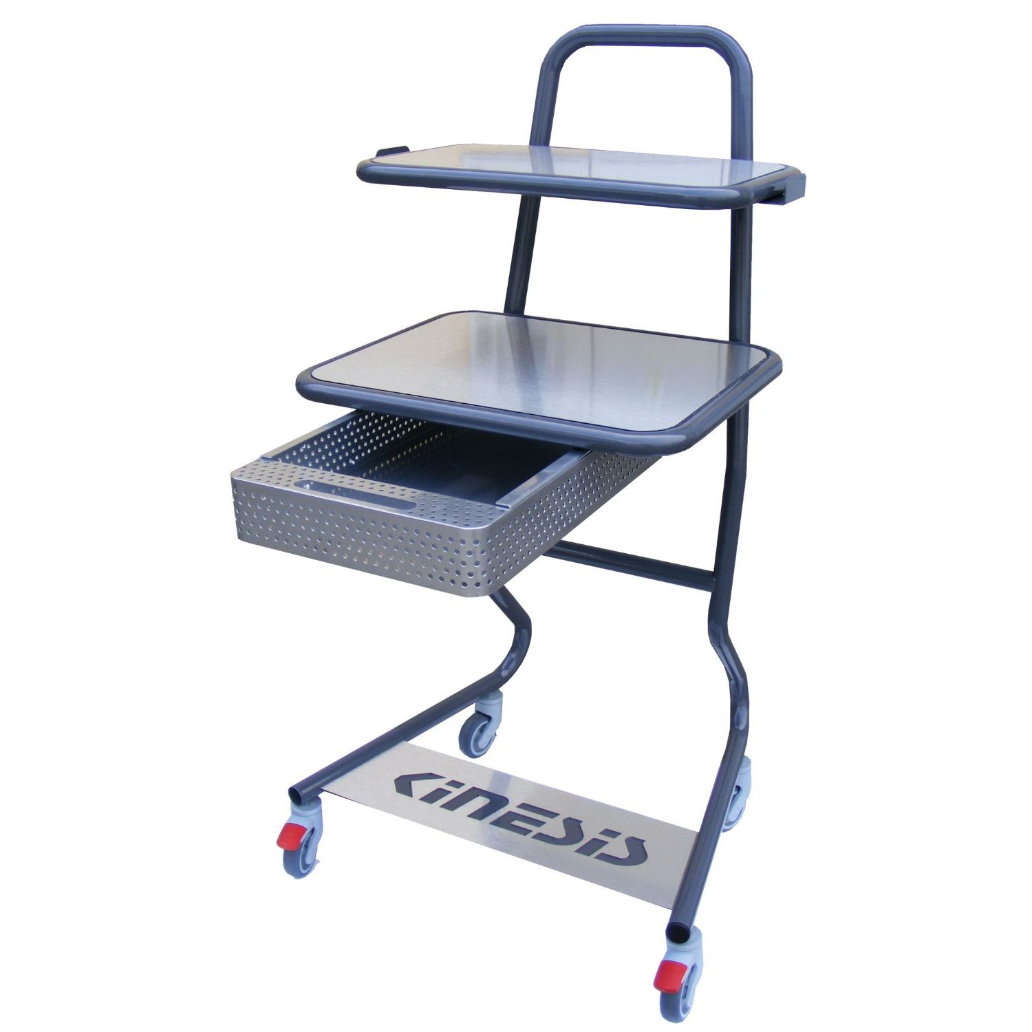Stolik pod aparaturę medyczną ELEGANT do fizykoterapii wyposażony jest w 2 półki, szufladę na akcesoria, uchwyty na kable oraz kółka z hamulcami pozwalające na bezproblemowe przemieszczanie stolika po całym gabinecie. Stolik wykonany jest z wytrzymałych materiałów, elegancki i estetyczny na stabilnej konstrukcji uniemożliwia przypadkowe jego wywrócenie.