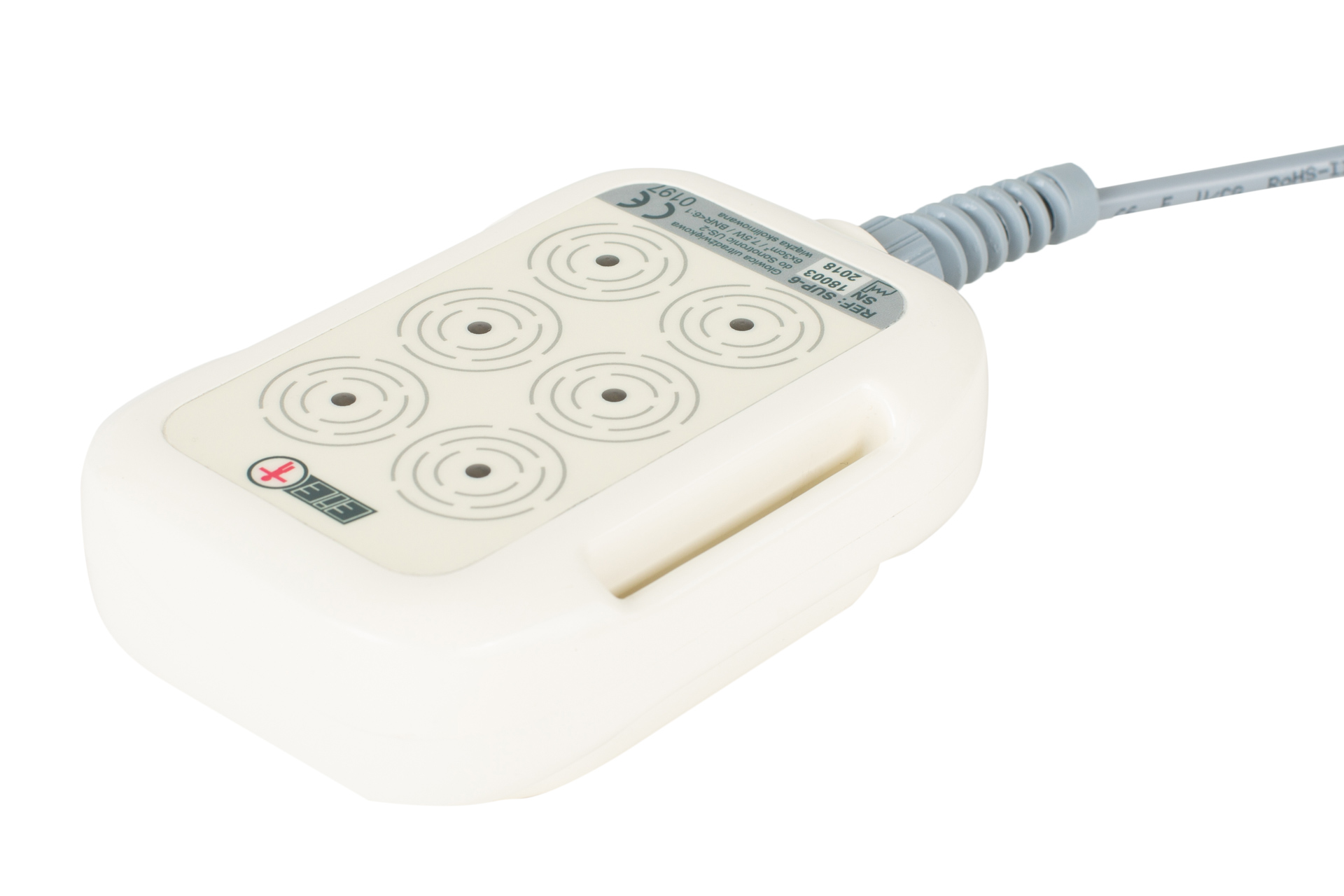 Automatyczna głowica ultradźwiękowa SUP-6 do zabiegów fizykalnych, widok urządzenia z przewodem.