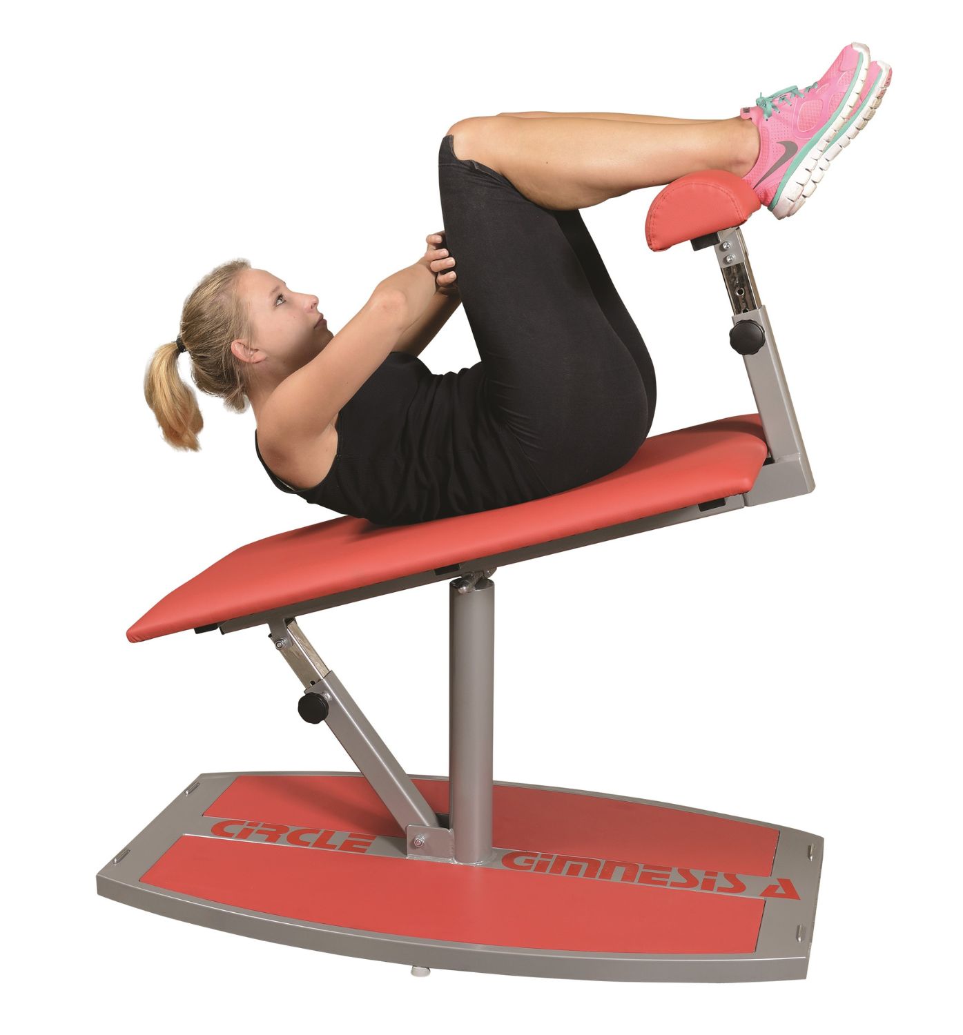 GYMNESIS CIRCLE A to urządzenie do ćwiczeń mięśni brzucha przy pomocy tułowia. W tym rozwiązaniu zastosowano specjalny system regulacji kąta platformy oraz wysokości podnóżka w celu większej efektywności ćwiczeń. Specjalne zaczepy na konstrukcji urządzenia pozwalają również na ćwiczenia obręczy barkowej oraz klatki piersiowej przy pomocy taśm i rzemieni gumowych – zwiększa to intensywność treningu.
