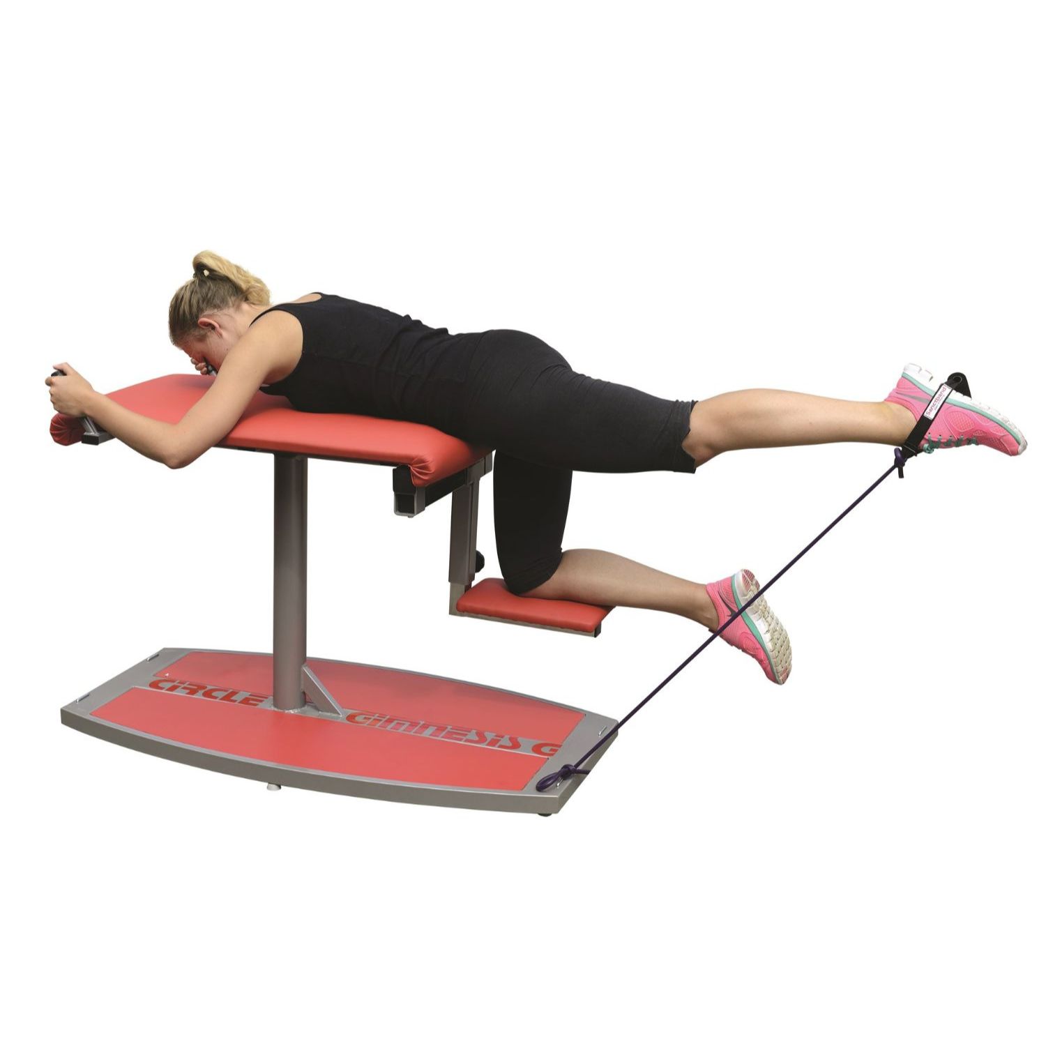 GYMNESIS CIRCLE G to urządzenie przeznaczone do optymalnego ćwiczenia mięśni pośladków. Dodatkowo zastosowano regulację podparcia kolana, co pozwala na dostosowanie urządzenia do preferencji ćwiczącego i zwiększenie wydajności ćwiczeń. Zastosowanie taśm i rzemieni gumowych oraz obciążników na kostki powoduje zwiększenie intensywności ćwiczenia.