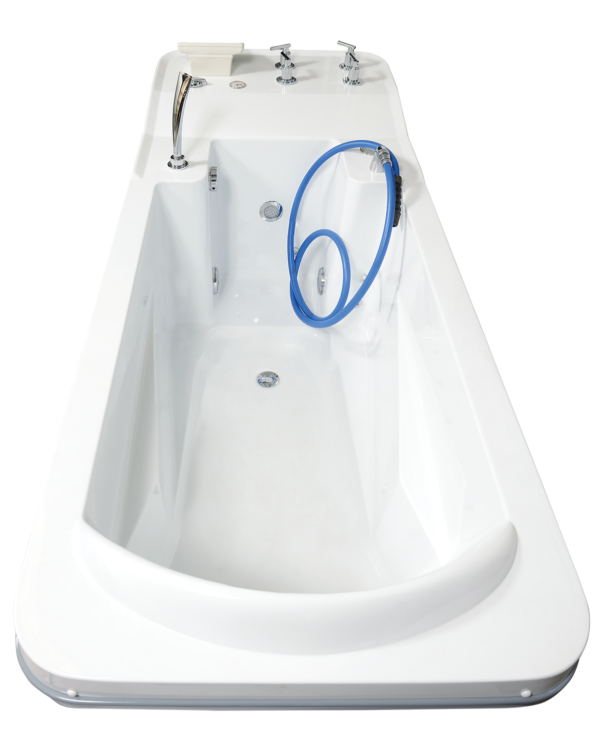 Wanna wyposażona w wąż do masażu ręcznego AQUARIUS E/M. Sterowana jest przez prosty, niezawodny system elektroniczny. Funkcje napełniania odbywa się automatycznie, natomiast spustu wody manualnie. Wanna posiada termometr oraz prysznic ręczny do opłukiwania wanny.