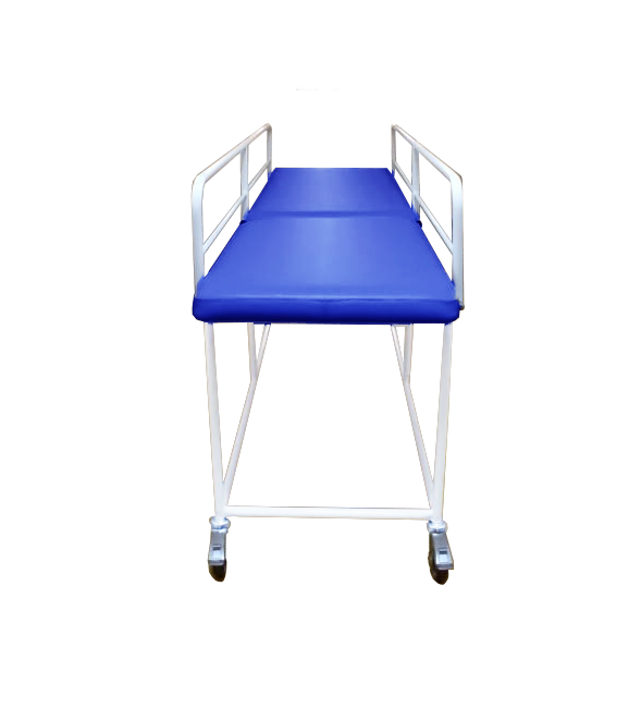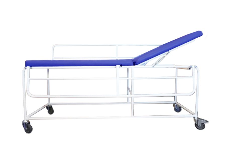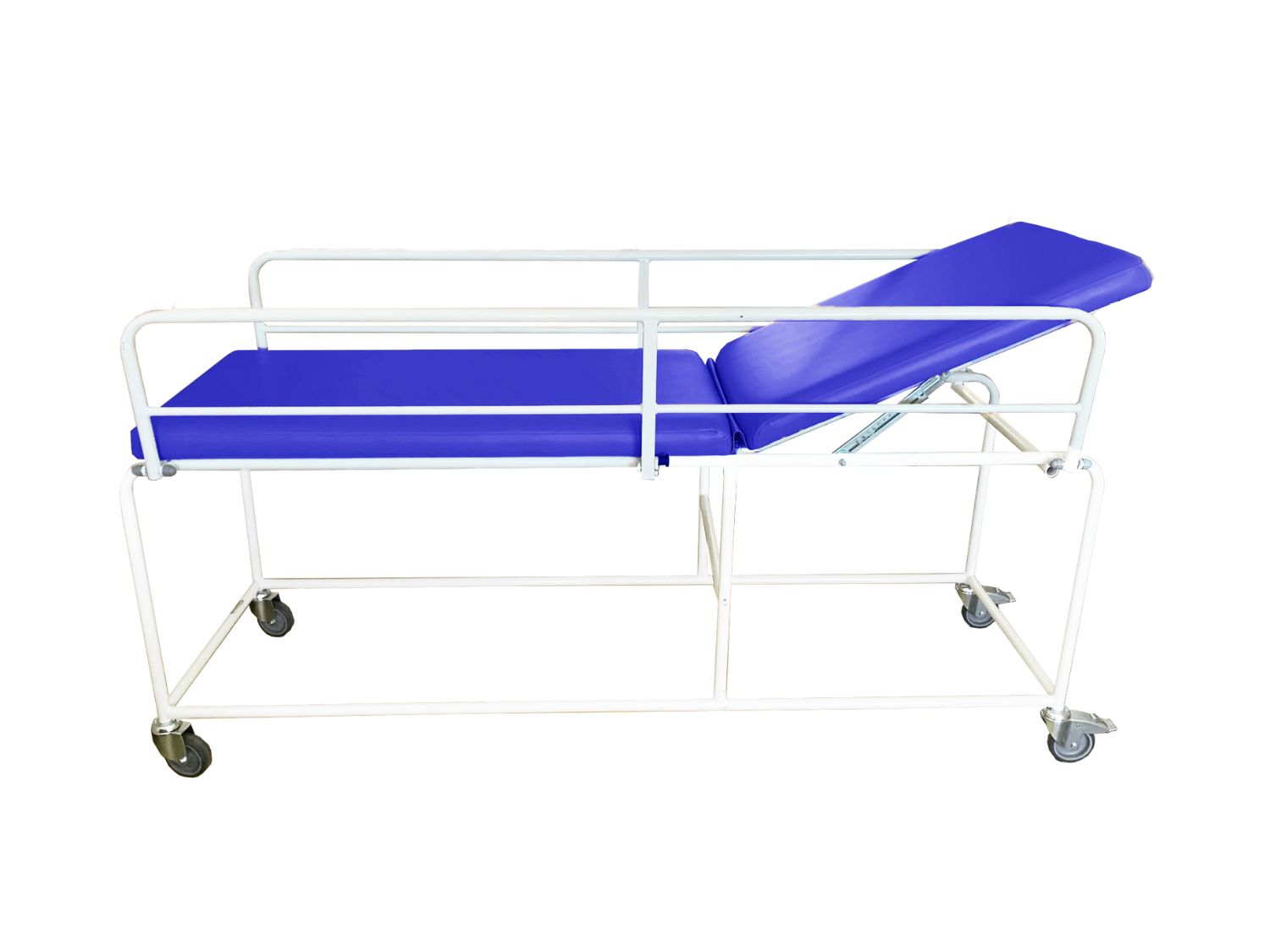 Wózek do przewozu chorych KZ-CH o stałej wysokości, wykonany z rur malowanych proszkowo. Regulowany, długi zagłówek zapewnia wygodne oparcie. Składane w bok barierki umożliwiają w łatwy sposób umieszczenie pacjenta na wózku.  Wózek posiada cztery koła skrętne, w tym dwa z hamulcem.  Tapicerka  wykonana z materiału skóropodobnego w kolorystyce MEDI lub opcjonalnie  z materiału zmywalnego i nieprzemakalnego.