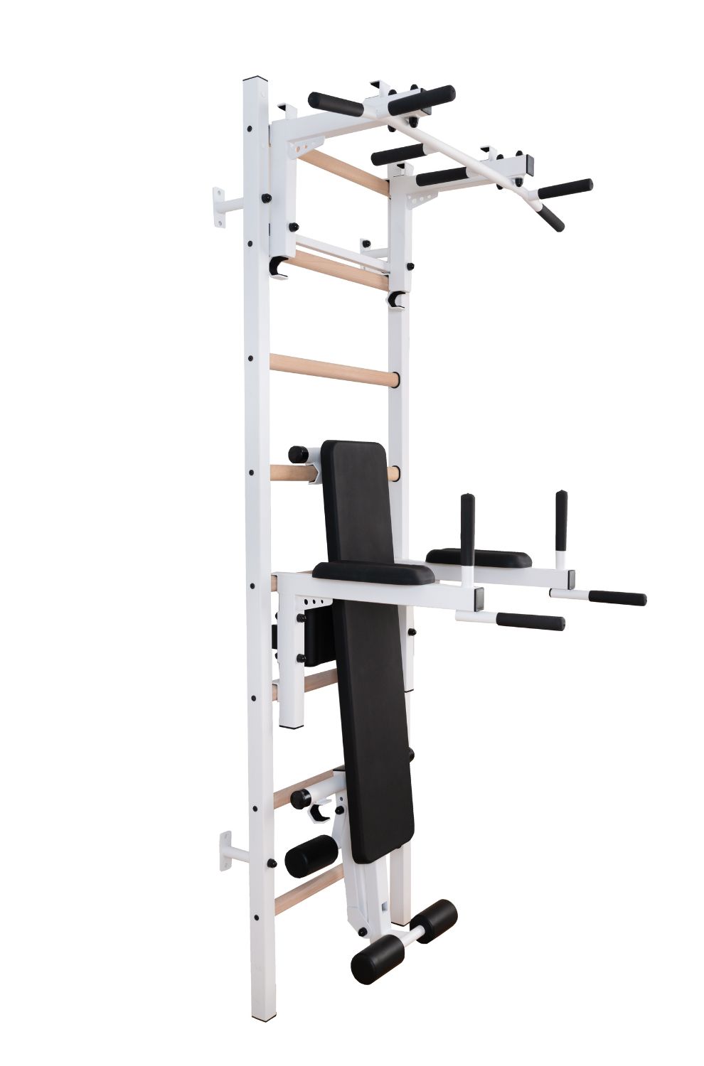 Drabinka gimnastyczna BenchK 700W z poręczą do dipsów i ławką treningową.
